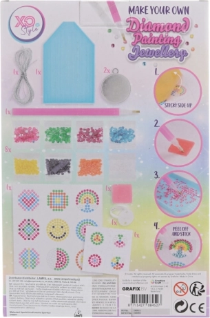Ta popoln komplet za izdelavo nakita s tehniko diamantnega slikanja spodbuja domišljijo, fino motoriko in zbranost. Otroci izberejo med 9 šablonami za obeske in 4 šablonami za prstane, nasujejo kamenčke na podlogo in jih s priloženim pisalom preprosto nanesejo na lepljivo površino. Rezultat so bleščeči in edinstveni dodatki, ki jih lahko ponosno nosijo ali podarijo.