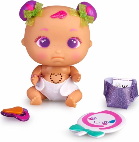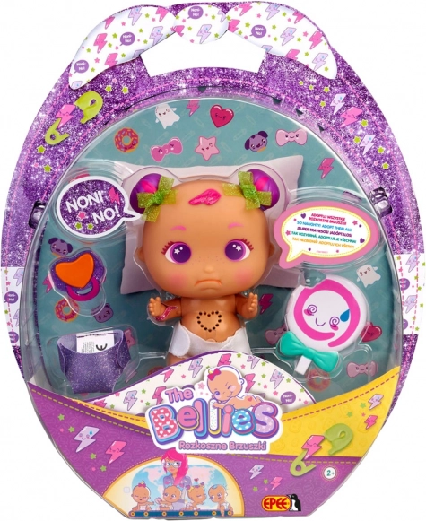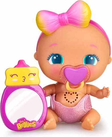 Prisrčno interaktivno dojenček iz kolekcije Bellies Sweet Tummies bo razveselil vsakega otroka. Punčka čeblja, ima bijojoče srčece in edinstveno materino znamenje. V pakiranju ne manjkajo dodatki za igro, vključno s cucljem, pleničkami ter stekleničko ali liziko.