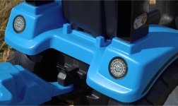 Robustno plastično ohišje, izrazita maska z »žarometi« in velika profilirana kolesa zlahka prenesejo vsakodnevno igro na prostem in na dvorišču.