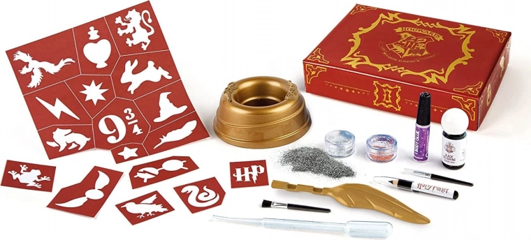 Odkrijte ustvarjalni svet čarovnije s tetovažnim studiem HARRY POTTER, ki otrokom omogoča varno ustvarjanje izvirnih začasnih tetovaž. Zahvaljujoč bogatim dodatkom, šablonam in bleščicam nastanejo čarobni motivi, navdahnjeni s svetom čarov in urokov. Enostavna uporaba in pregledno shranjevanje v kovčku naredita komplet odličnim darilom za male čarovnike in čarovnice.