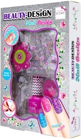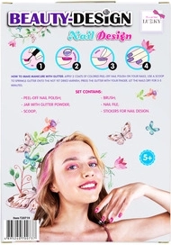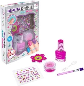 Komplet Lukky Beauty Design »Nohtni studio« spremeni vsak popoldan v ustvarjalni lepotni salon. Zahvaljujoč oluščljivemu laku, bleščicam in zabavnim nalepkam otroci zlahka ustvarijo izvirne dizajne brez potrebe po odstranjevalcu. Ergonomski pripomočki so prilagojeni otroškim rokam za udobno in varno uporabo.
