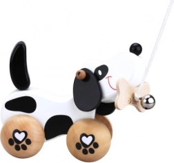 Kužek je na kolesih z motivom tačk, njegov rep pa se ob gibanju vrti, kar dodaja k njegovi igrivosti. Zabavo okrepi zvonček, ki spodbuja slušno zaznavanje otrok. Opremljen je z vrvico, ki je pritrjena k kosti v gobcu, kar omogoča enostavno vlečenje. Igrača je primerna tako za igro doma kot zunaj.