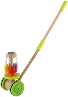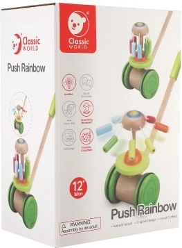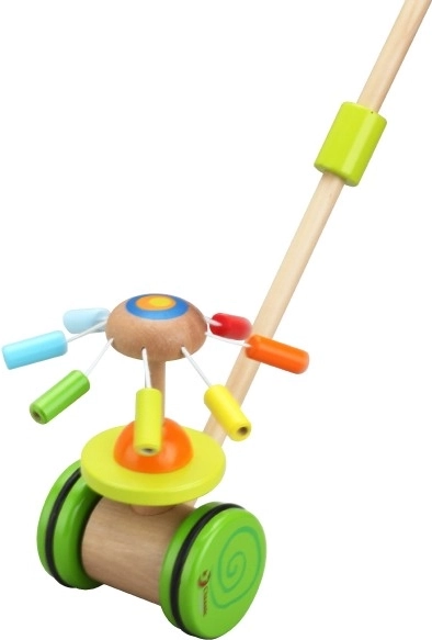 Leseni barviti potisni voziček Classic World je idealna igrača za male raziskovalce, ki se učijo hoditi. Voziček je opremljen z barvitim vrtiljakom, ki se vrti in oddaja prijetne zvoke, ki pritegnejo otrokovo pozornost ter podpirajo njegovo hojo.