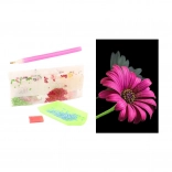 Samolepilno platno s potiskom, kamenčki (mešanica barv), aplikator (pero), voskasta blazinica, razvrščevalni pladenjček