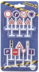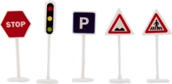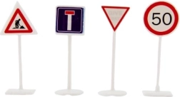 Paket vsebuje pester izbor znakov – od Stop, prednostne in stranske ceste, prepovedi in obveznosti pa do opozorilnih trikotnikov in informacijskih simbolov. Zaradi odporne plastike so primerni za vsakodnevno igro in jih je enostavno pospraviti.