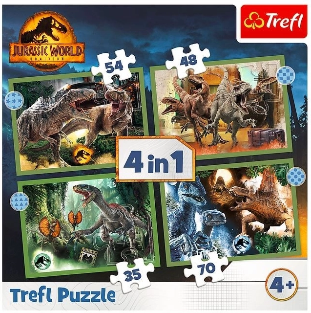 Potopite se v fascinanten svet dinozavrov s tem kompletom sestavljank 4v1, zasnovanim za vse navdušence nad filmom Jurassic World. Po sestavljanju vas čakajo štiri osupljive slike, vsaka v dimenziji 285 x 205 mm.