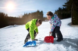 Posebna funkcija ustvarjanja snežnih žigov dodaja zabavo vsaki zimski igri. Lesena ročica v kombinaciji s polipropilensko lopato zagotavlja, da je izdelek trpežen in varen za uporabo otrokom od 3 let. Izpolnjuje vse varnostne norme za otroške igrače.