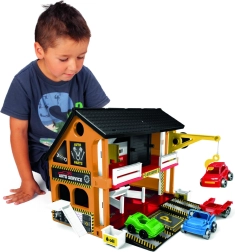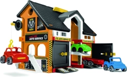 Komplet je opremljen s tremi avtomobilčki, rampami in 34 nalepkami za lastno okrasitev delavnice. Zahvaljujoč enostavno povezljivim elementom je montaža preprosta in trpežna, kar zagotavlja varno in nemoteno zabavo. Igralni komplet spodbuja ne samo otroško domišljijo in vizualno-prostorsko inteligenco, ampak tudi psihomotorične funkcije in ročne spretnosti.