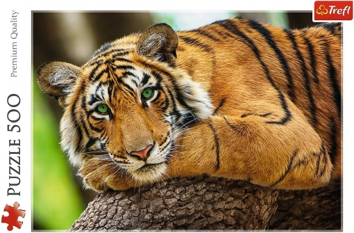 Sestavljanka z očarljivim portretom tigra iz 500 kosov. Po sestavljanju nastane slika velikosti 48 × 34 cm. Idealno za ljubitelje živali in sestavljank.
