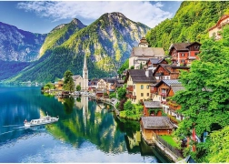 Žive barve in visoka ločljivost ujamejo mirno jezero, tradicionalno arhitekturo in gorsko panoramo. Končana sestavljanka deluje dekorativno in vas popelje v srce Alp.