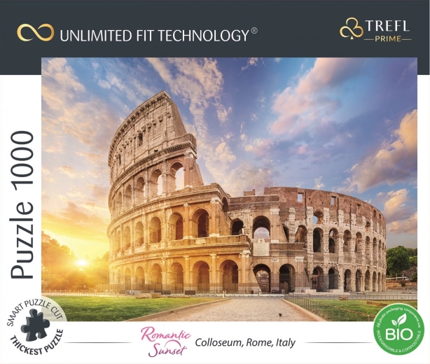 Odkrijte neskončno sestavljanje s sestavljanko TREFL UFT Romantic Sunset: Kolosej v Rimu s 1000 kosi. Zahvaljujoč tehnologiji Unlimited Fit Technology je mogoče posamezne motive iz serije preprosto povezovati in ustvarjati velike kolaže brez omejitev. Uživajte v najvišji kakovosti s trdim modrim kartonom, edinstvenimi oblikami kosov in praktičnim eko pakiranjem brez plastike.