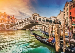 Potopite se v romantično vzdušje Benetk z motivom slavnega mostu Rialto ob sončnem zahodu. Serija TREFL UFT omogoča spajanje več sestavljank z različnimi motivi v eno veliko kolažo – preprosto, natančno in brez omejitev. Posebno orodje za izsek zagotavlja, da se posamezni koščki iz kompatibilnih UFT kompletov natančno prilegajo, končno sliko pa je mogoče varno prenašati brez razpada.
