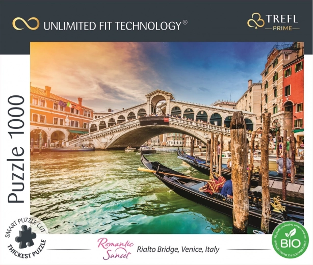 Sestavljanka TREFL UFT 1000 koščkov – Romantic Sunset, Most Rialto v Benetkah. Vrhunski karton, unikatni koščki, možnost povezovanja motivov, eko embalaža.