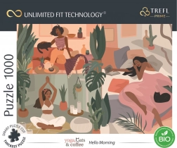 Uživajte v sprostitvi ob sestavljanju s sestavljanko TREFL UFT Yoga, Cats & Coffee – Dobro jutro s 1000 koščki. Zahvaljujoč Unlimited Fit Technology lahko posamezne motive iz serije poljubno povezujete in ustvarjate velike kolaže brez omejitev. Sestavljanka iz kakovostnega modrega kartona z edinstvenimi oblikami koščkov trdno drži skupaj in se enostavno prenaša. Okolju prijazna bio embalaža brez plastične folije bo razveselila vsakega ljubitelja trajnosti.