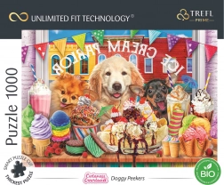 Trefl Unlimited Fit Technology (UFT) prinaša nov razsežnost sestavljanja: posamezne motive iz serije je mogoče poljubno medsebojno povezovati ter ustvarjati velike kolaže iz puzzlov brez omejitev. Motiv prikupnih kužkov pred slaščičarno bo navdušil ljubitelje živali in kakovostnega dizajna.