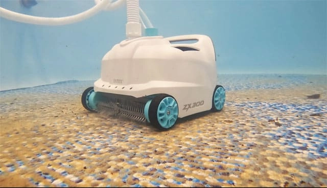 INTEX ZX300 je zanesljiv samodejni sesalnik, ki bo ohranjal vaš bazen čist skozi vso sezono. Zaradi štirih koles, močnega sesalnega pretoka in dvih vrtljivih krtač zlahka opravi s peskom, listjem in usedlinami na dnu ter stenah. Poveže se neposredno na filtrsko črpalko in deluje povsem samodejno – vi pa samo uživate v vodi.