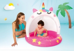 Bazen v obliki ljubkega samoroga bo vaš vrt spremenil v čarobno mesto za vodne igre. Zaradi vgrajenega nadstreška bodo otroci imeli prijetno senco in lahko uživali v osvežitvi tudi v vročih dneh. Praktična izvedba in igriv dizajn vabita k odkrivanju in nežnemu čofotanju.
