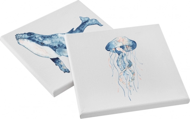 Univerzalna bombažna platna 20 × 20 cm so prednapeta na okvir in pripravljena za uporabo, zato se lahko takoj lotite ustvarjanja. Nežna struktura vlaken zagotavlja dobro oprijemljivost barv in čiste poteze s čopičem.