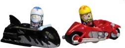 Vozila Mighty Beanz Machinez so ustvarjena za hitrost in trike – spustite jih po progi in opazujte, kako delajo premete in atraktivne skoke.
