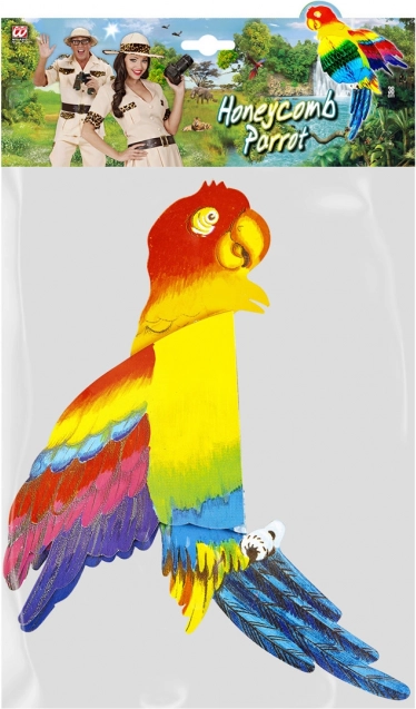 Vnesite v notranjost pridih eksotike z visečo dekoracijo papiga dolžine 38 cm. Zaradi pisanega videza, realističnega izgleda in satjastega 3D učinka je odlična za okrasitev otroške sobe, tematske zabave ali dnevnega prostora. Lahek kartonski material omogoča enostavno obešanje in prestavljanje, dekoracija je primerna od 3. leta in izpolnjuje varnostne standarde.