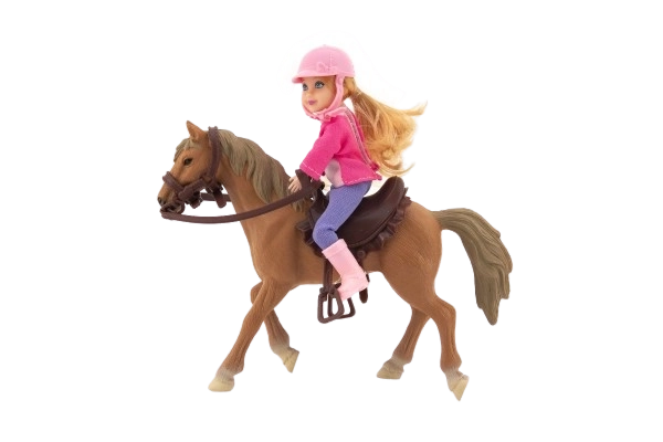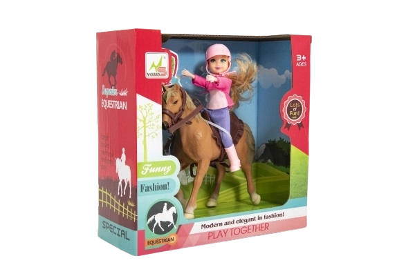 Ta igralni set bo razveselil vsakega otroka, ki ima rad konje in jezdiške dogodivščine. Punčka jahačica je oblečena v stajliš jezdiški outfit, ne manjka ji niti zaščitna čelada za kar najbolj pristno igralno izkušnjo. Konjiček ima dolgo grivo in rep (nista namenjena česanju), kar poudari videz in doda pristnost pri igri.