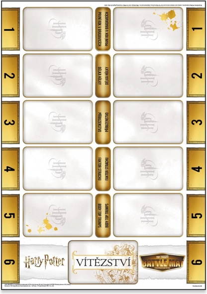 Top Trumps Battle Mat je nova namizna različica priljubljene igre Top Trumps iz sveta Harryja Potterja. Igra je v celoti v češčini in je idealna za družine in skupine prijateljev. Vaš cilj je zmagovati v kategorijah, zbirati karte in kot prvi zmagati v sedmih bitkah.