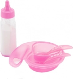 Ta set za punčke je idealen dodatek za vsako malo negovalko. Pripravi slastne obroke v posodico in jih postrezi svoji punčki s priloženo žličko in vilico. Opazuj, kako se mleko v steklenički 'izhlapi', ko daješ punčki piti, in se spet pojavi, ko stekleničko obrneš. Ta set prinaša ure zabave in spodbuja razvoj fine motorike ter skrb za druge.