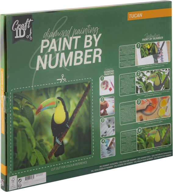 Diamantno slikanje Tukan 40x50 cm ponuja edinstveno združitev dveh kreativnih tehnik – slikanja po številkah in okraševanja s kamenčki. Omogoča vam ustvariti osupljivo sliko, ki bo krasila vsak prostor.