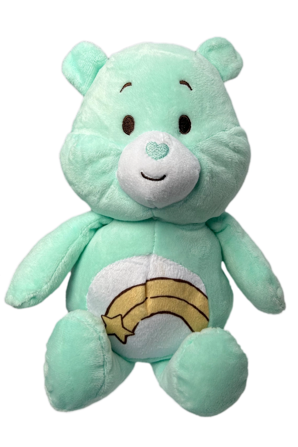 Ljubek plišasti medvedek CARE BEARS velikosti 30 cm je mehki prijatelj za crkljanje, igro in uspavanje. Na voljo je v 5 pastelnih barvah z različnimi vezeninami na trebuščku (luna, zvezda, mavrica, koktajl, sonček). Zahvaljujoč nežnemu plišu in varnim vezenim detajlom je idealen za otroke in kot prikupna dekoracija otroške sobe.