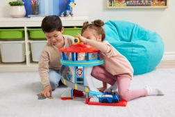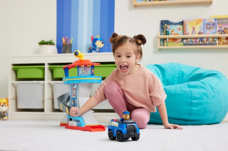 Postavite civilnega Chasea na sprednji del dvigala in heroja Chasea na zadnji. Dvignite dvigalo in opazujte, kako se civilni Chase spremeni v heroja Chasea. Na vrhu stolpa izberite eno od 3 dvostranskih misijskih kartic za dnevno nalogo. Ko pride čas za reševanje, se spustite po toboganu naravnost v Chaseov policijski avto in odidite v akcijo s pritiskom na lansirnik avtomobilov. Za še več zabave lahko zbirate druge mladiče, kot so Marshall, Skye in Rubble s svojimi vozili.
