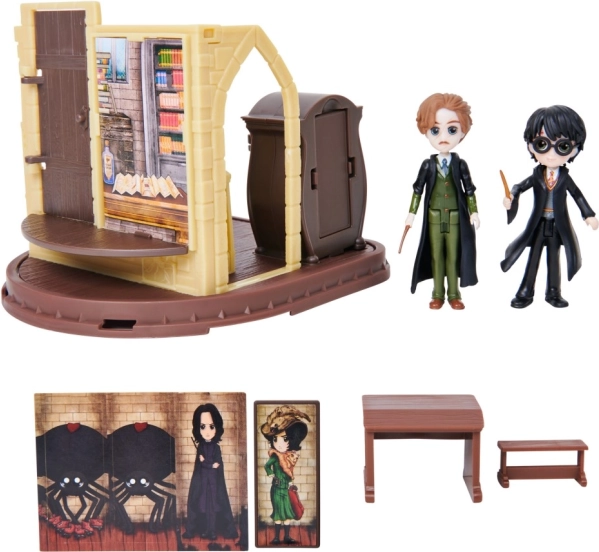 Ta izjemna igralna seta, navdihnjena s svetom Harryja Potterja, otrokom ponuja možnost, da doživijo magijo od blizu. Seta vsebuje 7,6 cm visoke figurice, ki otrokom omogočajo igro priljubljenih prizorov. Dovolj je, da pritisnete na bočno stran omare in pojavi se boggart, kar naredi igro bolj interaktivno. Vrtljiv panel in odpirajoča se vrata predstavljata dodatne elemente, ki spodbujajo otroško domišljijo.