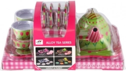 Priredite čarobno čajanko! Ta kakovosten otroški kovinski čajni set vsebuje 14 kosov posodja za serviranje in igro vlog. Zaradi vzdržljive pločevinaste izdelave, barvitih vzorcev in praktičnega pladnja je idealen za skupno igro otrok od 3. leta dalje. Opozorilo: ne gre za posodje za dejansko uporabo s pijačami.