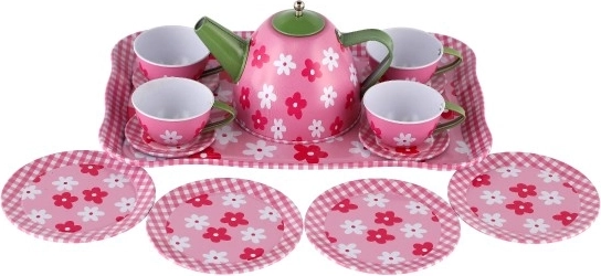 V pakiranju najdete vse potrebno za majhno čajanko – čajnik, skodelice s krožnički in krožnike. Set je odličen za razvoj socialnih veščin, učenje pravila bontona pri mizi ter skupno igro s prijatelji. Posodje ni namenjeno dejanski pripravi ali uživanju pijač.