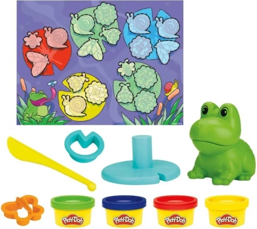 Vstopite v svet ustvarjalnosti s setom Play-Doh Starters Žaba – učenje barv. Otroci žabi iztisnejo dolg zabaven jezik, ustvarjajo metulje, polže in muhe s pomočjo modelčkov ter se učijo razvrščanja po barvah na priloženi podlagi. Priloženi so 4 lončki modelirne mase Play-Doh in varna orodja za majhne roke.