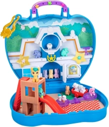 Ustvarite si svet čarobnih mini prijateljev iz vse Equestrie! Komplet My Little Pony Mini World Magic je sestavljen iz majhnih prizorov in prikupnih figuric, navdihnjenih s serijo My Little Pony: Tell Your Tale. Ta komplet Compact Creation vsebuje 2 prikupni figurici visoki 1 palec: Sunny Starscout in Choco Cozy! Priloženih je več kot 40 kosov za prilagajanje prizora v Maretime Bayu. Zgradite svet s pomočjo ograj in stopnic, sestavite Sunnyjin voziček za smutije in izobesite blago zastavice. Priključite dodatke in gradbene dele na igralni komplet, da ustvarite mini svet, nato pa prizor prilagodite s priloženim listom nalepk. Postavite dodatke v obliki draguljev v sito in dodajte hladno vodo, da spremenite barvo. Predstavljajte si, da na plaži s Sunny in Choco Cozy odkrijete zaklad! Vse je shranjeno v prenosnem kovčku za zabavo na poti. Ta igrača je odlično darilo za praznike ali rojstne dneve za otroke od 5. leta dalje!