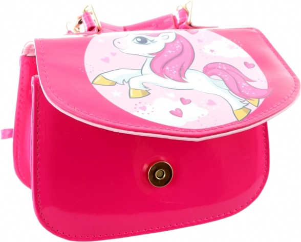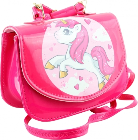 Ta rožnata torbica z ljubkim samorogom je popoln dodatek za vsakodnevno nošenje in posebne priložnosti. Bleščeča površina, zlati kovinski detajli in igriv potisk jo delajo vpadljiv kos, ki ga otroci obožujejo.