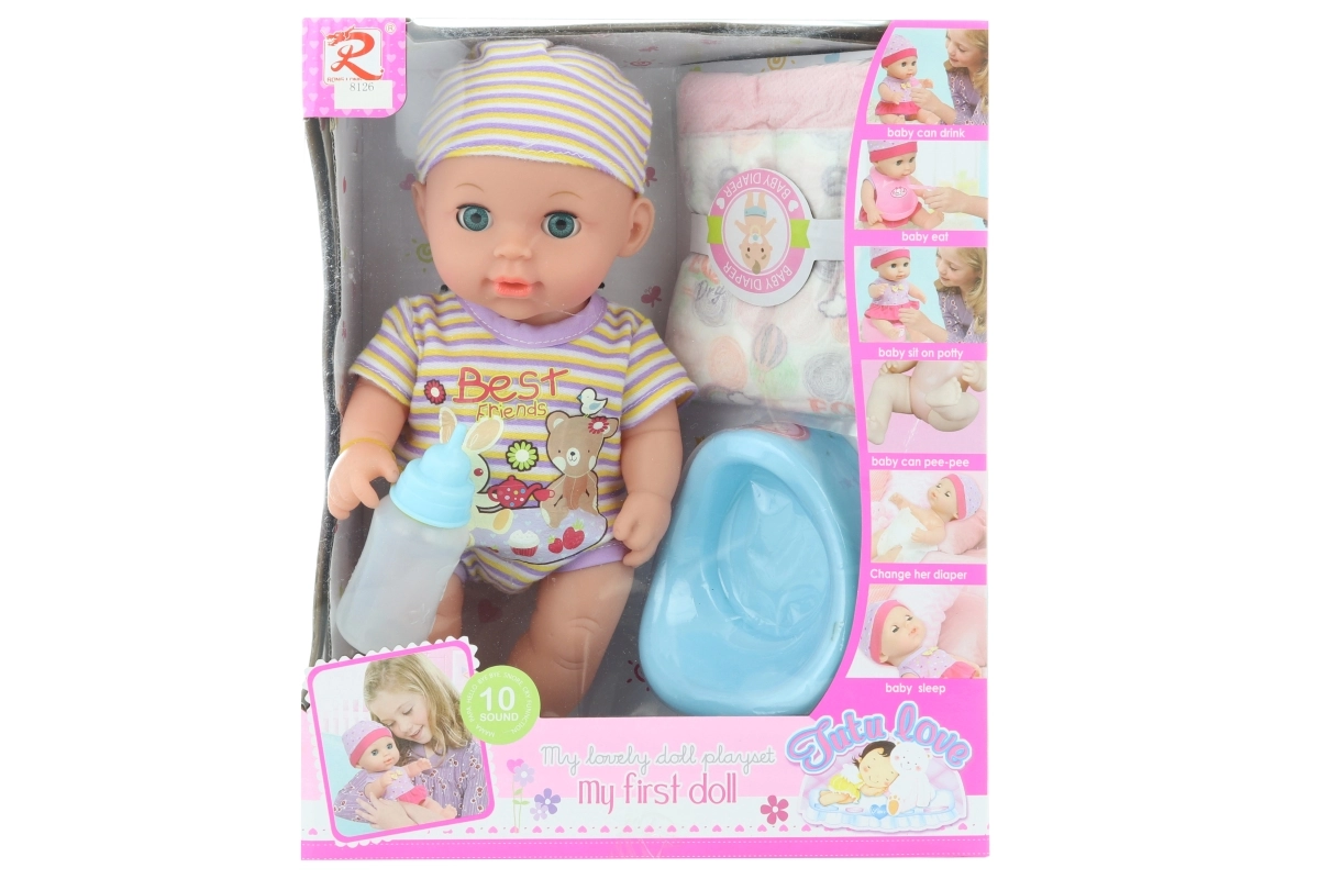 Po vstavitvi baterij punčka oddaja prisrčne zvoke, ki spodbujajo domišljijo in otroke pritegnejo v igro skrbništva nad dojenčkom.