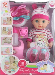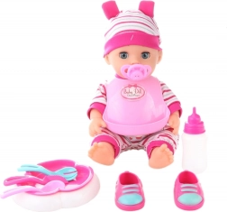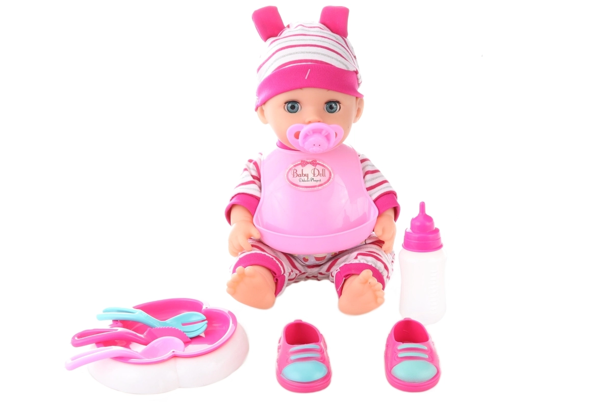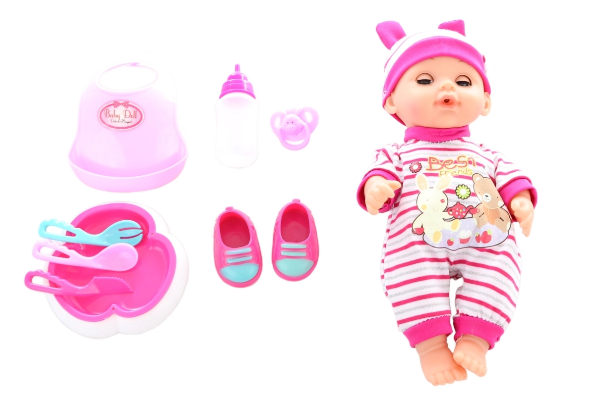 Del seta so copatki, plastični slinček, steklenička, krožniček, pribor in drugi dodatki za raznoliko domišljijsko igro.