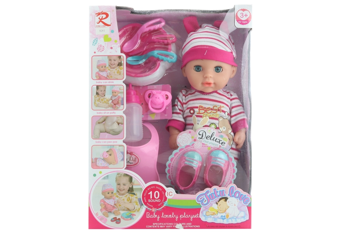 Po napitju lahko punčka lula, zato se otroci lahko preizkusijo v hranjenju, posedanju na kahlico in osnovni negi.