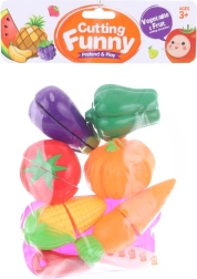 Set za rezanje zelenjave je idealna igrača za otroško kuhinjico. Zahvaljujoč povezavi s čičkalnim trakom lahko otroci varno »režejo« in znova sestavljajo posamezne kose zelenjave, s čimer urijo koordinacijo roke in očesa ter razvijajo domišljijo pri igri kuhanja.