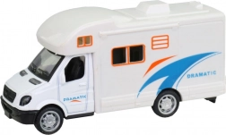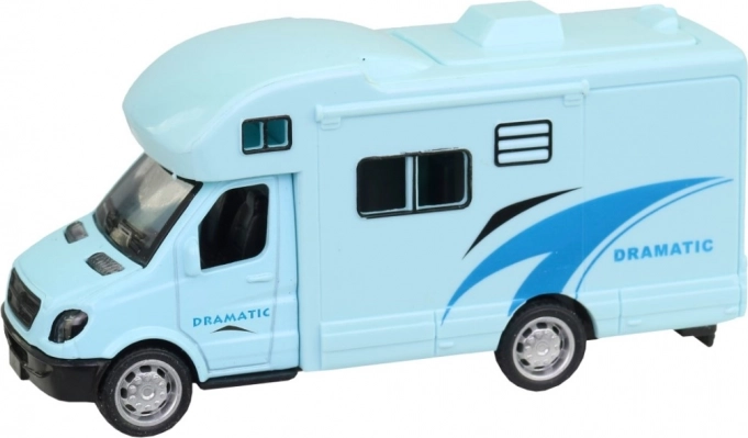 Vzdržljiva kovinska izvedba z realističnimi okni, potiski in strešnimi elementi za pristno igro potovanj in kampiranja.