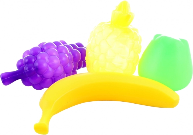 Ta barvit komplet sadja vključuje priljubljene vrste, kot so banana, jabolko, pomaranča, grozdje in ananas. Vsak kos je izdelan iz lahke, trpežne plastike z zaobljenimi robovi za varno igro. Praktično pakiranje v mrežici olajša prenašanje in shranjevanje.
