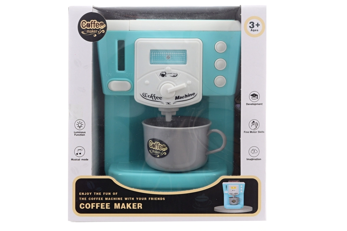 Zabaven plastičen kavni aparat za male bariste prinaša realistično igro zahvaljujoč svetlobnim učinkom in zvokom. Enostavno upravljanje, kompaktne mere in varna izvedba bodo razveselili otroke od 3 let.