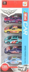Ta set prinaša pet različnih modelov avtomobilčkov, ki bodo razveselili vsakega malega voznika. Zaradi priročne embalaže je idealen kot darilo, za na pot ali za razširitev domače zbirke. Avtomobilčki so izdelani iz plastike, so enostavni za upravljanje in spodbujajo razvoj domišljije ter fine motorike.