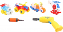 S tem kompletom vozil za privijačenje bo vaš otrok doživljal ure zabave in učenja. Zahvaljujoč priloženemu akumulatorskemu vrtalniku (2 AA bateriji, baterije niso priložene) si otroci lahko sami sestavljajo in razstavljajo igrače, kar spodbuja razvoj fine motorike.