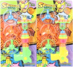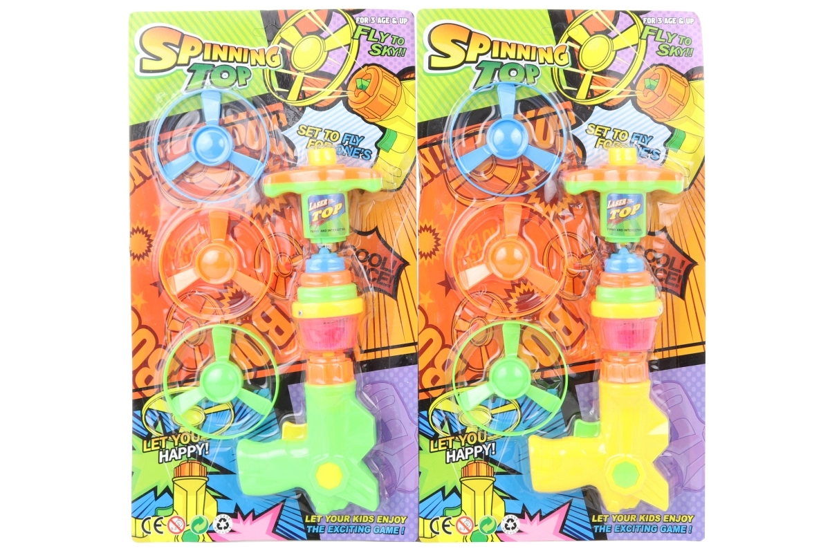 Zavrti zabavo z baterijsko pištolo, ki izstreljuje rotorje v zrak in razveseli vsakega malega navdušenca nad gibanjem. Zaradi enostavnega upravljanja si otroci hitro osvojijo princip in uživajo v varnem letenju rotorjev doma in na prostem. Priložen je tudi barvni vrtežek za dodatno dozo zabave.