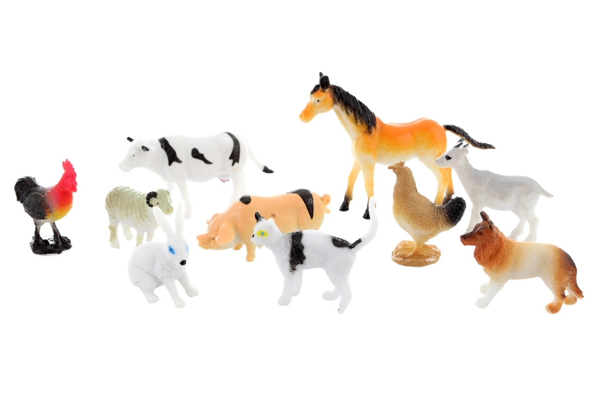 - Vsebina pakiranja: konj, pes, mačka, kokoš, petelin, krava, oven, koza, prašič, zajec (skupaj 10 kosov)