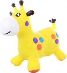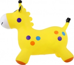 Vesela rumena žirafa s pisanimi pikami spodbuja gibanje in vsako skakanje spremeni v radostno igro.