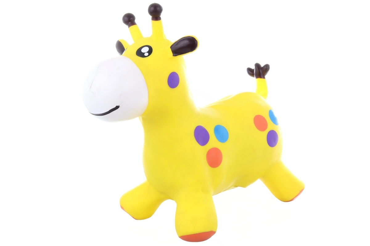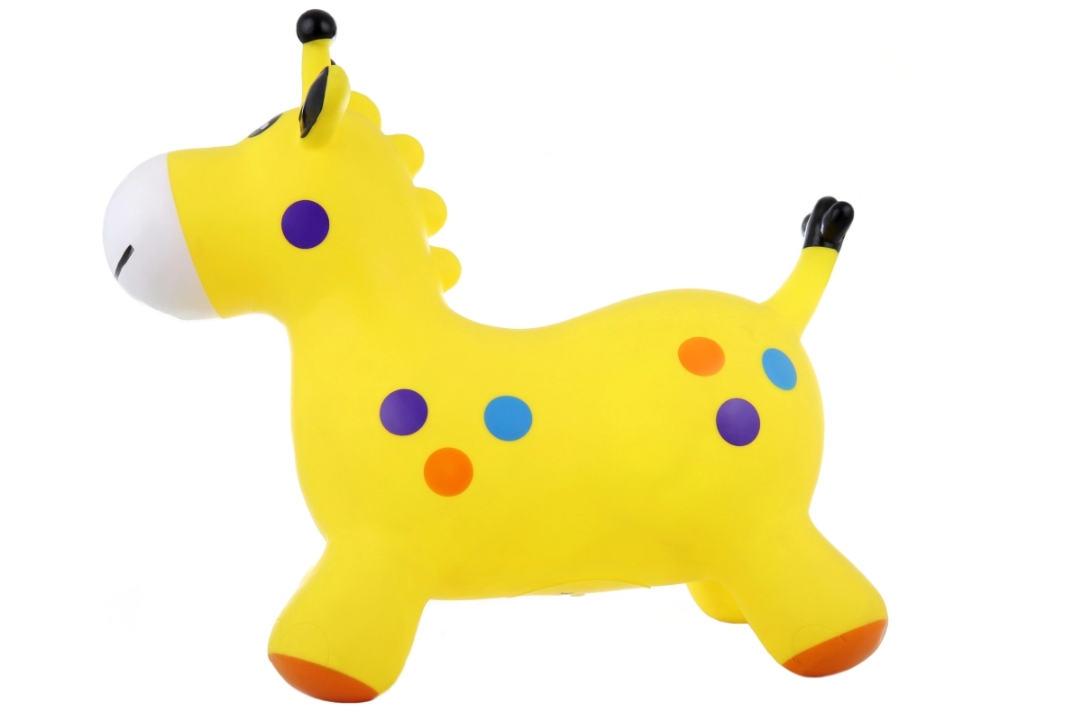 Rumeno gumijasto hopsadlo v obliki prikupne žirafe je idealno za otroško sobo ali vrt. Zahvaljujoč stabilni štirinožni konstrukciji in zaobljenim oblikam ponuja varno skakanje ter podpira naravno gibanje otrok. Žive barve in igriva zasnova spodbujajo igro ter krepijo motoriko in koordinacijo.
