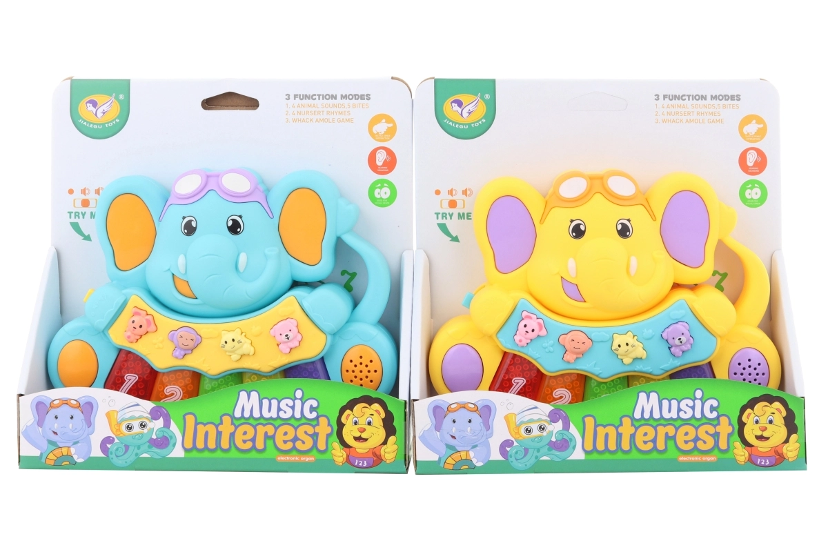 Ta barvit klavirček v obliki slona razvija sluh, ritem in fino motoriko. Z živalskimi zvoki in preprostimi toni bodo otroci uživali veliko zabave ter se učili prepoznavati nove zvoke. Kompaktna velikost je idealna za voziček, na potovanja in za doma.